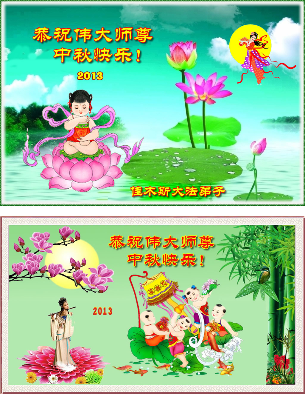 <英文版: http://en.minghui.org/html/articles/2013/9/19/142117.html>长春大法弟子恭祝师尊中秋好(21条)