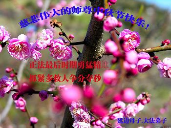 在这一年一度的团圆之日,我们向伟大慈悲的李大师敬献自己最诚挚的敬意!感谢李大师对我们的慈悲救度!如若不是您让您的弟子向世人讲真相,不知会有多少的大陆子民成为中共邪党的陪葬品!我们庆幸、自豪,生逢这伟大的时代,赶上李大师慈悲救度众生,给了我们得救的机会!再次感谢慈悲的李大师,永远的感恩李大师,感恩真善忍宇宙大法!