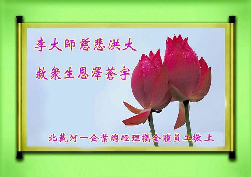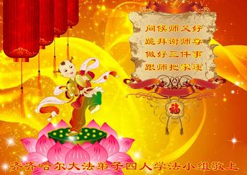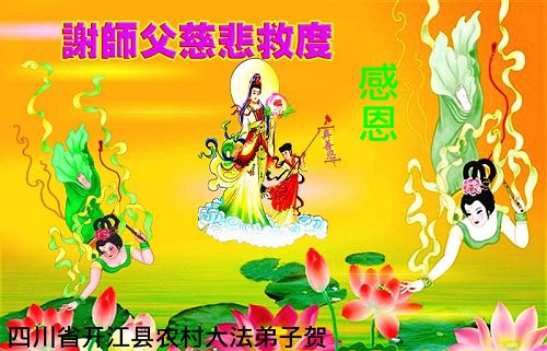 佳节到来,我们代表所有亲朋好友以及明白法轮大法真相的世人向远在国外的李大师致以崇高的谢意!感恩李大师对我们的慈悲救度!我们已在心中暗下决心,面对李大师的慈悲救度无以为报,唯有向世人讲清法轮大法的美好,让世人远离中共邪党,能够有一个進入美好未来的机会,在这万古难遇的法轮大法洪传时期近一点微薄之力,不辜负伟大慈悲的李大师对我们的慈悲救度。我们无限的感恩李大师!