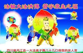我们这一大家族有九十多人,已有八十多人明白大法真相,退出了中共党、团、队邪教组织,相信法轮大法好、真善忍好;尤其是我那八十多岁的老父亲,身患重病,卧床多年,是一个顽固难化的邪共老党员,受邪党文化毒害几十年,大法弟子一直不放弃给他讲真相。在这几年病痛的折磨中,师父一直恩泽于他,几次都从死亡的边缘被拉回来,今年他终于发自内心的同意退出了中共邪教组织,家里亲人对他作出明智的选择都感到高兴,我们这一大家人都沐浴在大法的浩荡佛恩中。