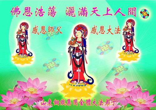 尊敬的李大师您好!我们代表所有的亲朋好友感谢您对我们的慈悲救度,如果不是您让您的弟子给我们讲真相,我们现在还蒙在鼓里,受着邪党的愚弄,最后作了邪党的牺牲品,堕入万劫不复的境地,永无出头之日!请李大师放心,我们一定要将邪党的丑行曝光于天下,让更多的民众看清邪党的丑恶嘴脸,让善良的人们都能明白真相得救度。跪谢李大师救度大恩!