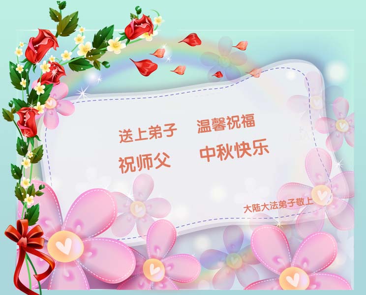 癸巳年中秋节即将到来,大法弟子向慈悲伟大的师尊问好,并祝师尊中秋节快乐。感谢师尊的慈悲苦度,向师尊合十叩拜。大法弟子谨遵师尊的教诲,越到最后更要精進实修,做好三件事,走好最后的路。