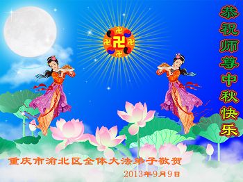 慈悲伟大的师尊:您好!在二零一三年中秋佳节到来之际,我们大连市教育界全体大法弟子向您表示最真诚的祝愿!我们一定听师尊的话,精進实修,做好三件事,走好正法修炼的最后这段路,救度更多的众生!