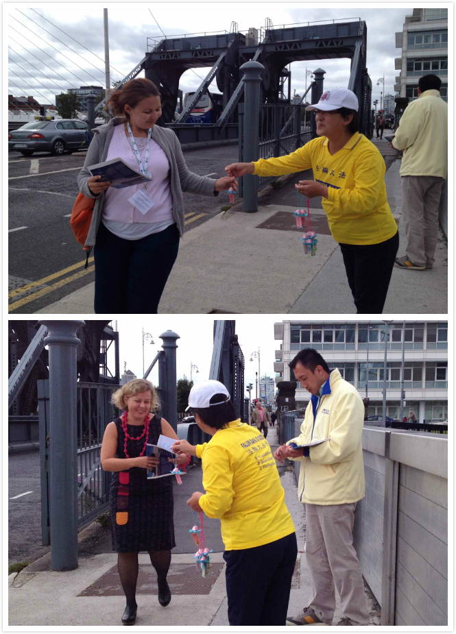 在几天的活动里,爱尔兰法轮功学员抓住时机,向每一位参会者递发二零一三年的明慧英文特刊,其中包括中共残忍的活体摘取法轮功学员器官,并牟取暴利的血腥罪恶。中共活摘法轮功学员器官自二零零六年在国际社会曝光以来,中共不仅层层抵赖,而且更加具有欺骗性地加速在中国国内的器官盗取,因为它们知道国际社会在紧紧地关注这个“地球上最大的邪恶”。尤其是军队医院,是大量参与活摘器官的邪恶场所。