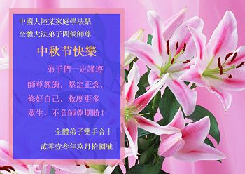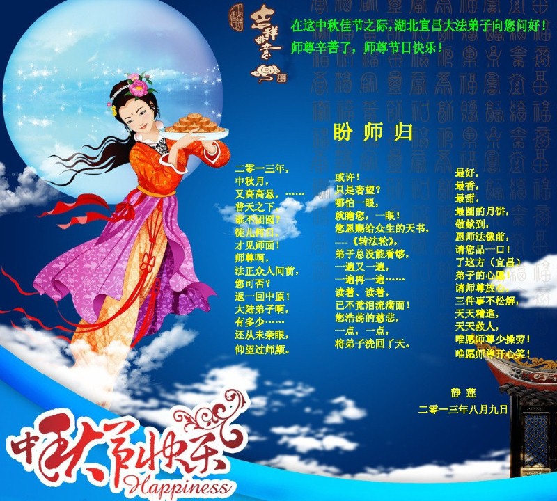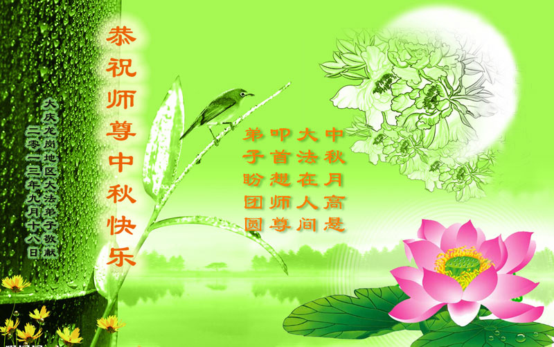<英文版: http://en.minghui.org/html/articles/2013/9/20/142238.html>新学员恭祝师尊中秋好