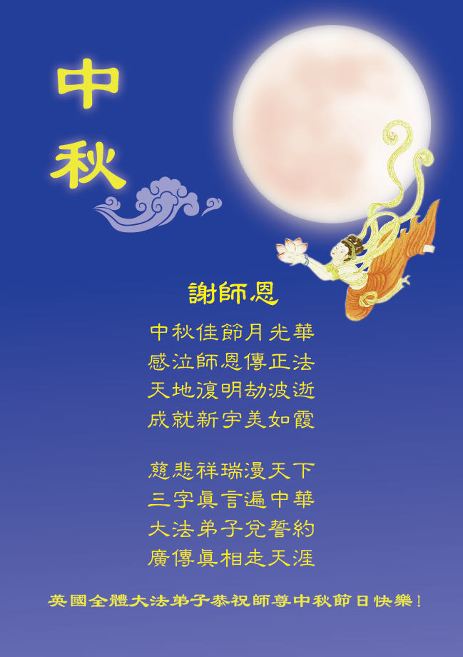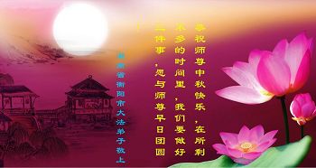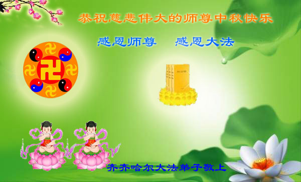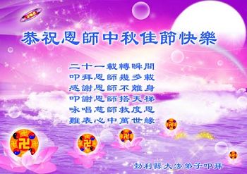 值此中秋佳节之际,借助小小贺卡一张,我们加拿大卡尔加里的大法弟子向师尊敬贺中秋节快乐!