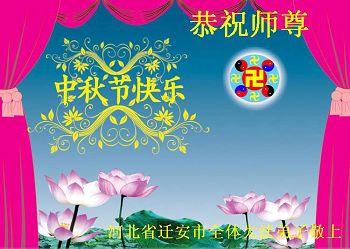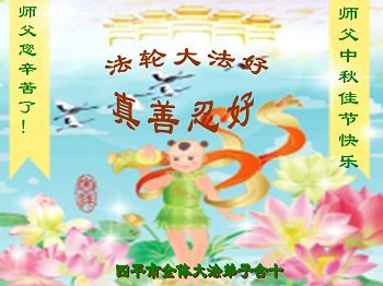 尊敬的师父,您好!一年一度的中秋佳节再度来临了。法国大法弟子在这象征阖家团聚的节日里向慈悲伟大的师父问好!