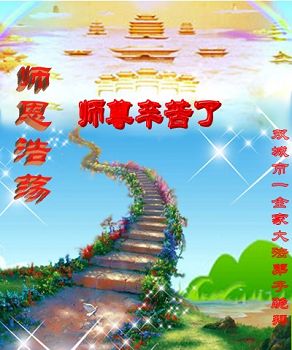 用尽人间、天上的所有语言也道不尽师尊的洪恩!捧出宇宙中的一切珍宝也报答不了师尊为众生的付出!师尊只要我们正法修炼的正念,师尊只要更多众生的得救。师尊难,难在弟子人心拦。弟子只有同化大法去人心,多学法,走好人成神之路,师尊才能欣慰。我们才不辜负师尊的慈悲苦度!