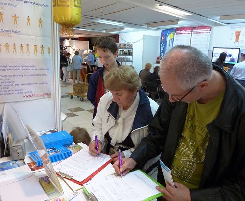 波兰法轮大法学会已连续四年第七次参展(注:每年春秋两季),受到很多波兰人的喜爱和欢迎,大家纷纷购买《转法轮》,波兰语《法轮功健康调查报告北美235例》也被索取一空,更多的人在反对中共残酷迫害法轮功的征签表上签名,呼吁制止中共活摘器官。
