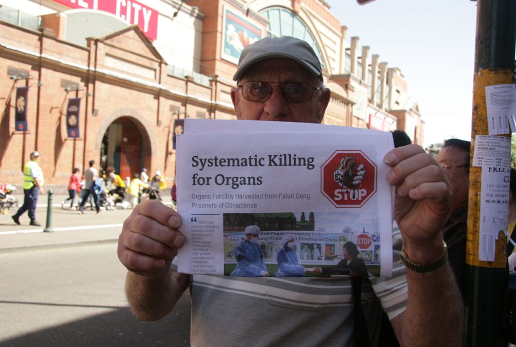 悉尼居民les shone 经常来唐人街,接到过不少法轮功学员送给他的真相资料,他知道中共在活体摘取法轮功学员的器官,他说:“我支持法轮功,支持真、善、忍,我要为制止中共对法轮功这场残酷的迫害而出一份力量,我觉得我在制止迫害法轮功的征签表上签一次名不够,还要坚决反对中共这种惨无人道的暴行,制止中共迫害法轮功。”