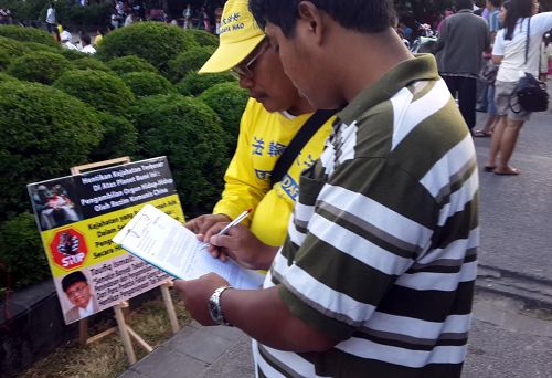 ![]() 印尼民众签名,谴责中共活摘器官暴行 |