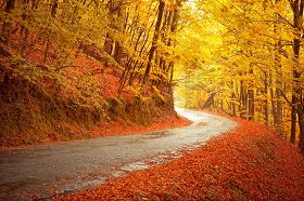 金秋风送爽,户外促织鸣。稻田翻金浪,满山枫叶红。碧空雁排阵,回归万里程。法徒救人忙,日日神路行。