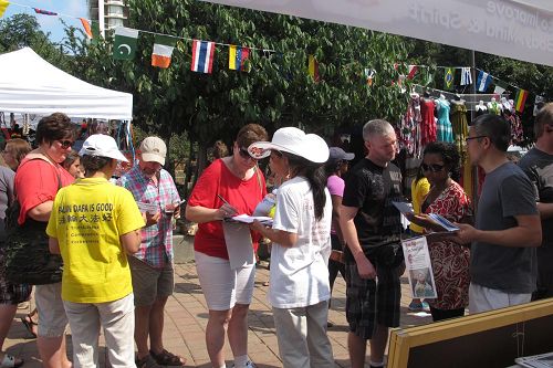 二零一三年八月三十日至九月二日,美国肯塔基州路易斯维尔市迎来了一年一度盛大的世界节。在为期四天的活动中,法轮功学员们通过展位向人们展现修炼的美好,讲述中共活摘法轮功学员器官的真相。