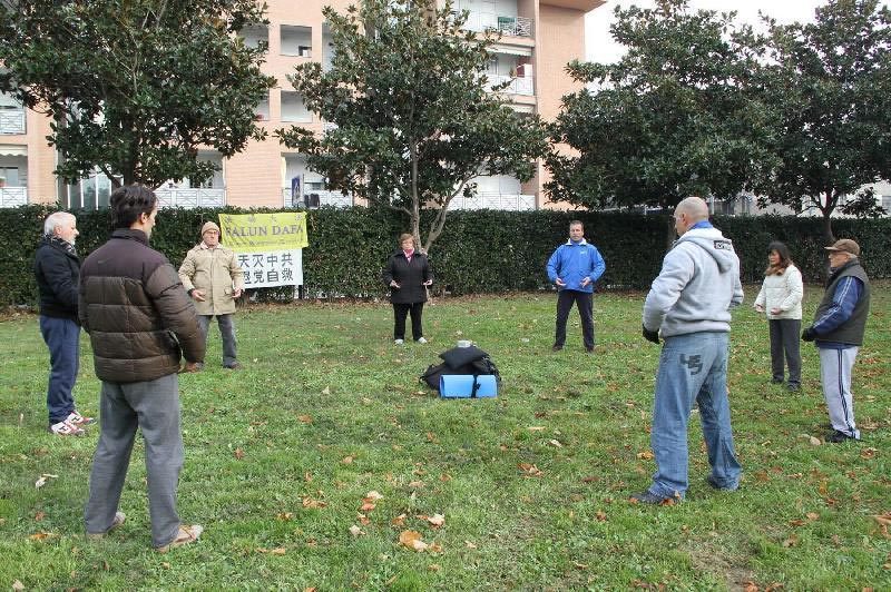 报导说,二零一三年十二月二十二日,在普拉托城的华人有机会了解到法轮大法的真相——尽管在中国大陆,法轮功遭受中共的残酷迫害,蒙受不白之冤——实际上法轮功有益无害。这也是两位托斯卡纳人,安德烈和都门尼科的心愿。他们分别是普拉托和佛罗伦萨的一个古老的身心修炼功法的炼功点的负责人,每周六早上十点至十二点,在普拉托科伦坡街的花园里,两名志愿者展示这一来自东方的功法。法轮功是李洪志先生于一九九二年创立的佛家高层修炼大法,法轮功功法的核心是同化宇宙特性“真、善、忍”。