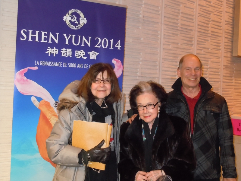 魁北克著名作家Jeanette Moscovitch女士(中)是神韵的忠实爱好者,几乎每年都来观赏神韵。她表示,每年她都看到了新东西。