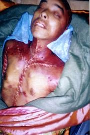伤痕累累的王斌的遗体,内脏被野蛮摘除
