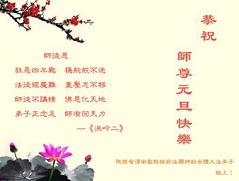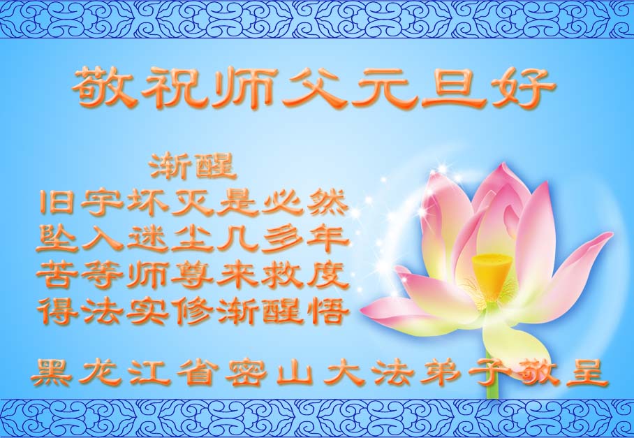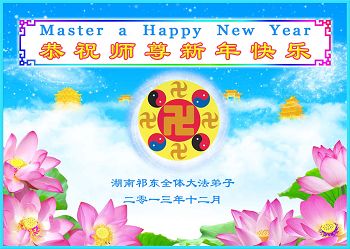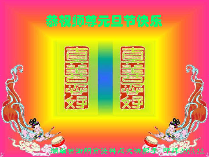 在这历史的关要时刻,又迎来了新年元旦,在此湖南教师大法弟子一家,祝慈悲伟大的师尊元旦快乐!新年快乐!。弟子一定在来年更加的勇猛精進,做好一个正法时期的大法弟子,让师尊少一些操劳,请师父放心。