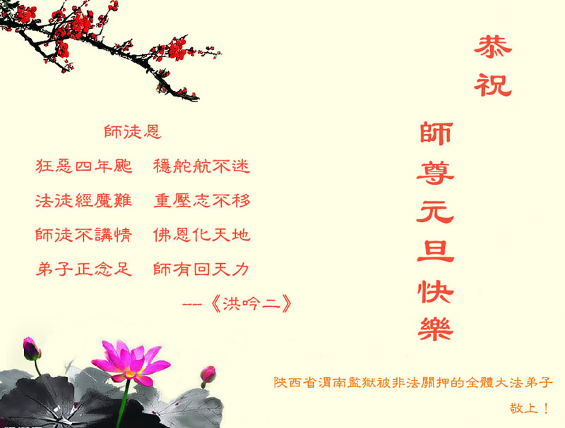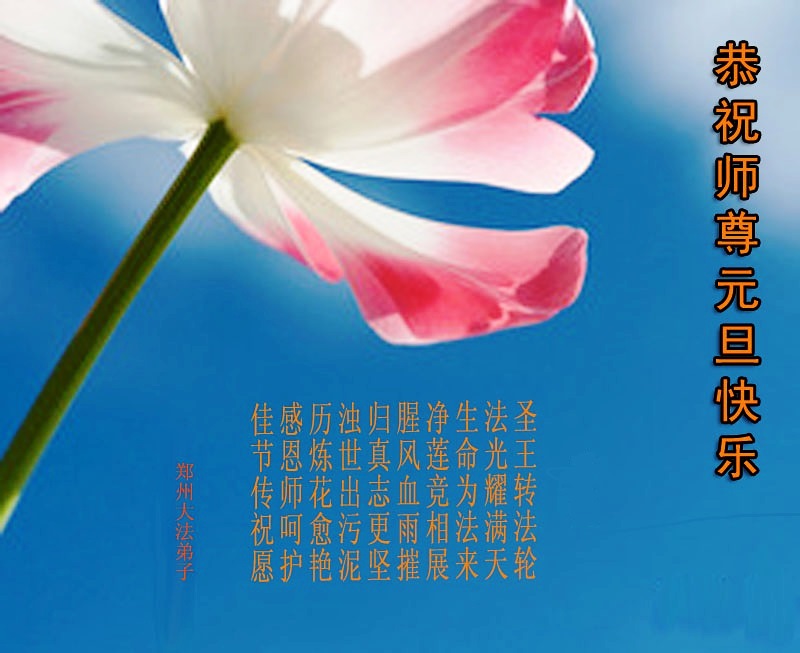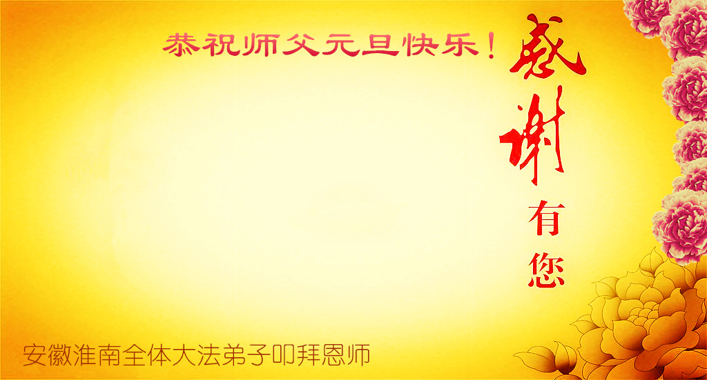 用尽千言万语表达不尽对慈悲伟大师尊的感恩。修炼路上师尊一路呵护,对弟子操碎了心。弟子只有勇猛精進,不迷恋红尘,做好三件事,才不愧对师尊史前的重托,不愧对众生的殷殷期盼。在新年到来之际,河南省濮阳地区、中原油田全体大法弟子恭祝慈悲伟大的师尊元旦快乐,对师尊说一声:您辛苦了!