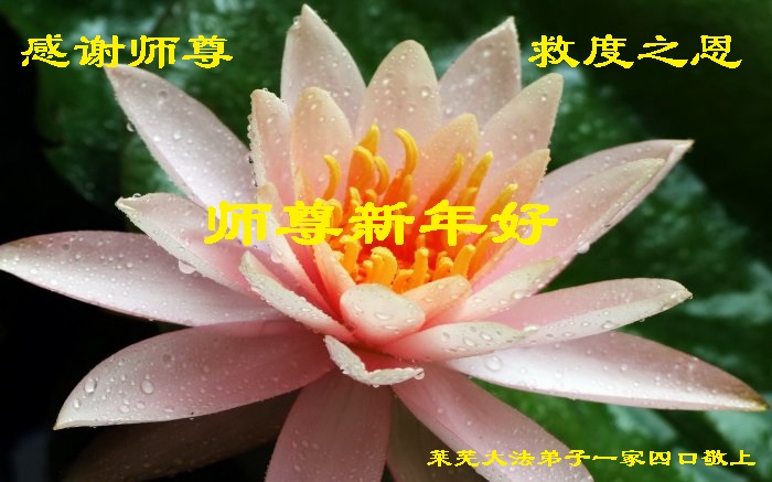 我们一家四口是原辽宁抚顺市的大法弟子,来到美国已经近三年的时间,在新年来临之际,再一次感谢师父的慈悲救度!师父,您为我们和宇宙众生承受了太多、太多。我们用尽人类的语言也无法表达对师尊的感恩。只有在正法的最后时刻实修自己,努力做好三件事,兑现我们自己的史前誓约。