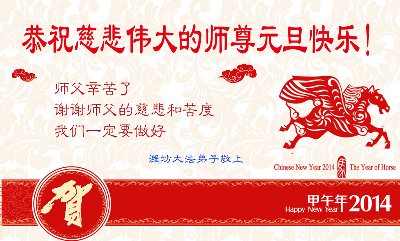 <英文版: http://en.minghui.org/html/articles/2014/1/3/144172.html>各行业大法弟子恭祝师尊新年快乐(80条)