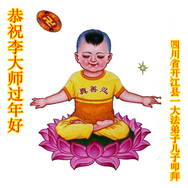 四川省开江县一大法弟子的儿子恭祝李大师过年好!