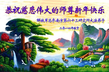 大陆总参系统大法弟子全家恭祝师尊新年好!解放军总装备部后勤部全体大法弟子祝愿师尊新年快乐!江苏省军队转业干部大法弟子恭祝师尊新年快乐!中国人民防空系统大法弟子恭贺师尊新年好!