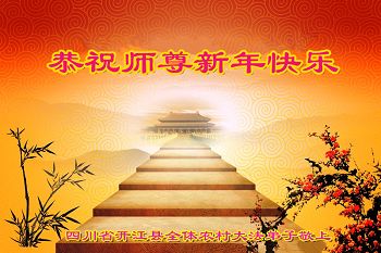 江苏淮安大法小弟子祝慈悲伟大的师父过年好!感谢师父救度之恩!江苏淮安大法小弟子跪拜山东省烟台市福山区大法小弟子恭祝师父过年好!四川省巴中大法小弟子祝师父新年快乐!我们在新的一年里会认真做好三件事,修好自己,当好师父的小弟子。