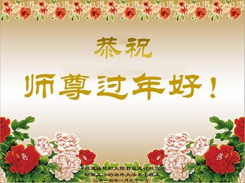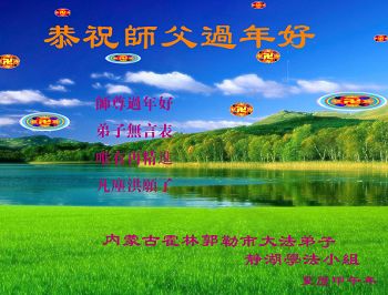 大陆中央政府中大法弟子恭祝慈悲伟大的师尊新年快乐!河南新乡政府机关大法弟子携全家恭祝师尊过年好!山东青岛市政府机关系统工作的大法弟子恭祝师尊节日快乐!