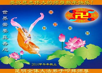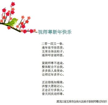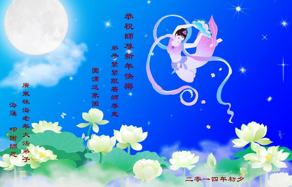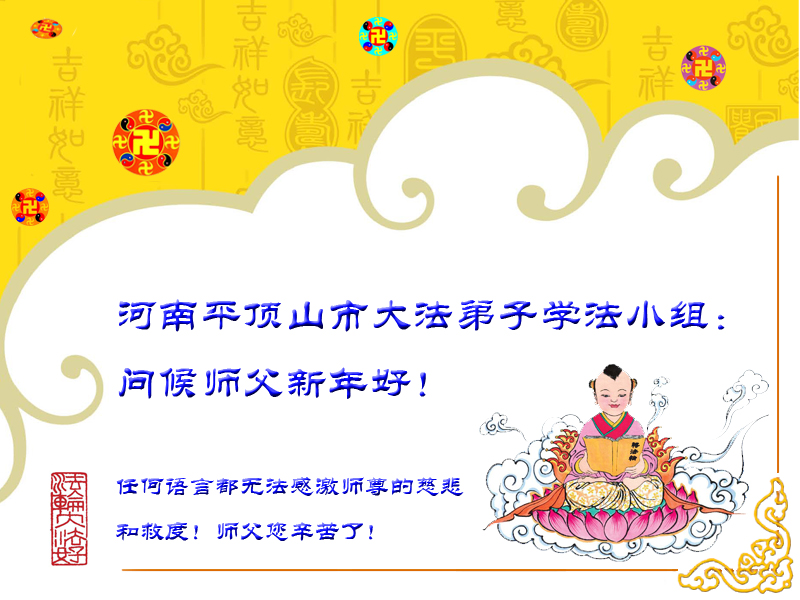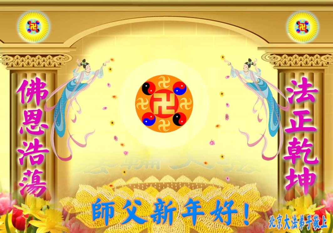 一大法小弟子:在此跪拜慈悲伟大的师尊,祝师尊新年快乐!