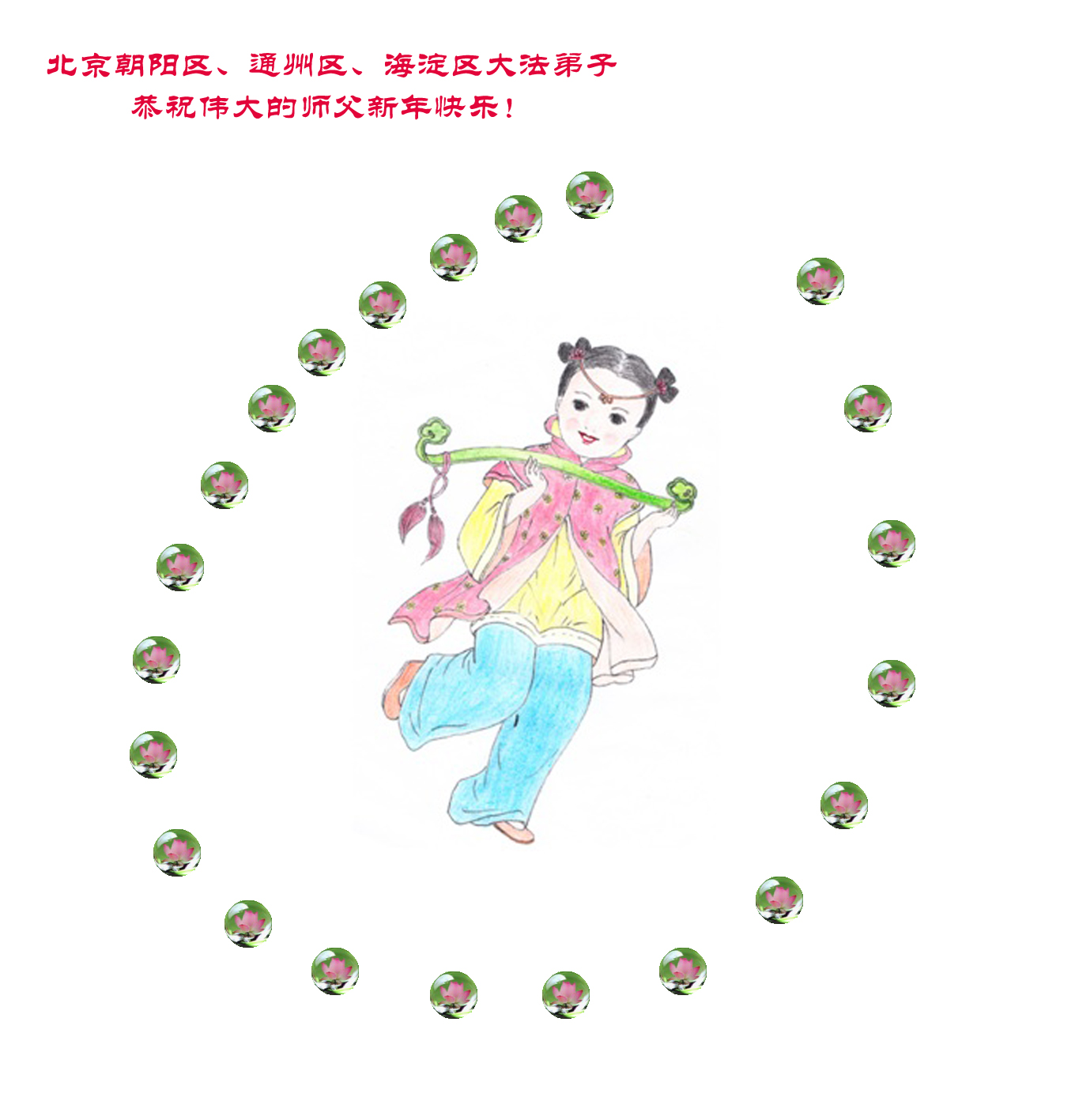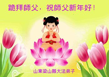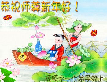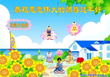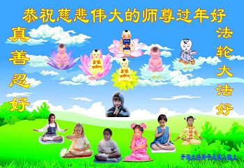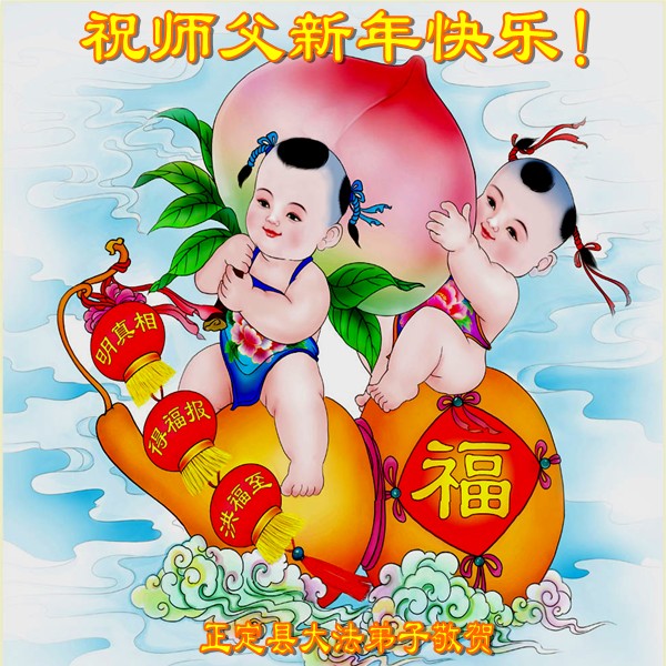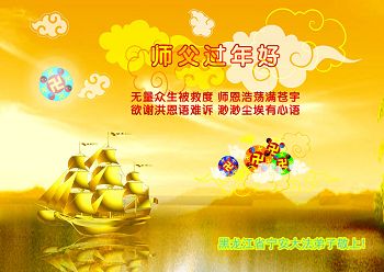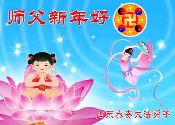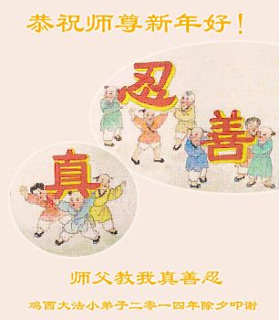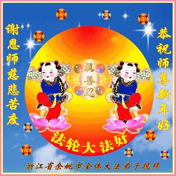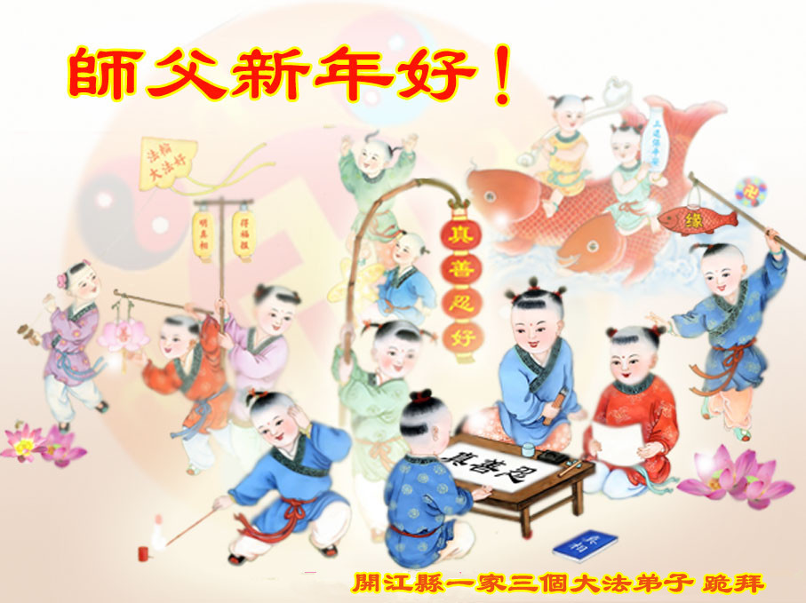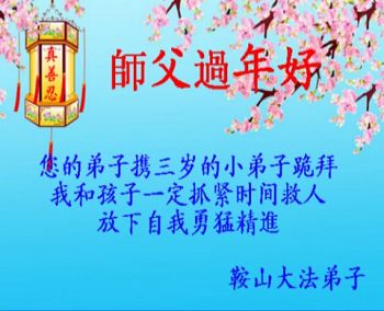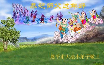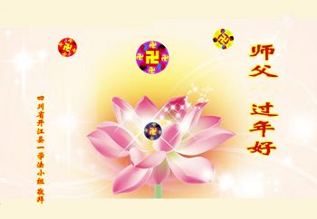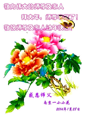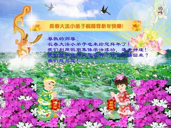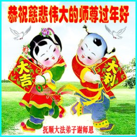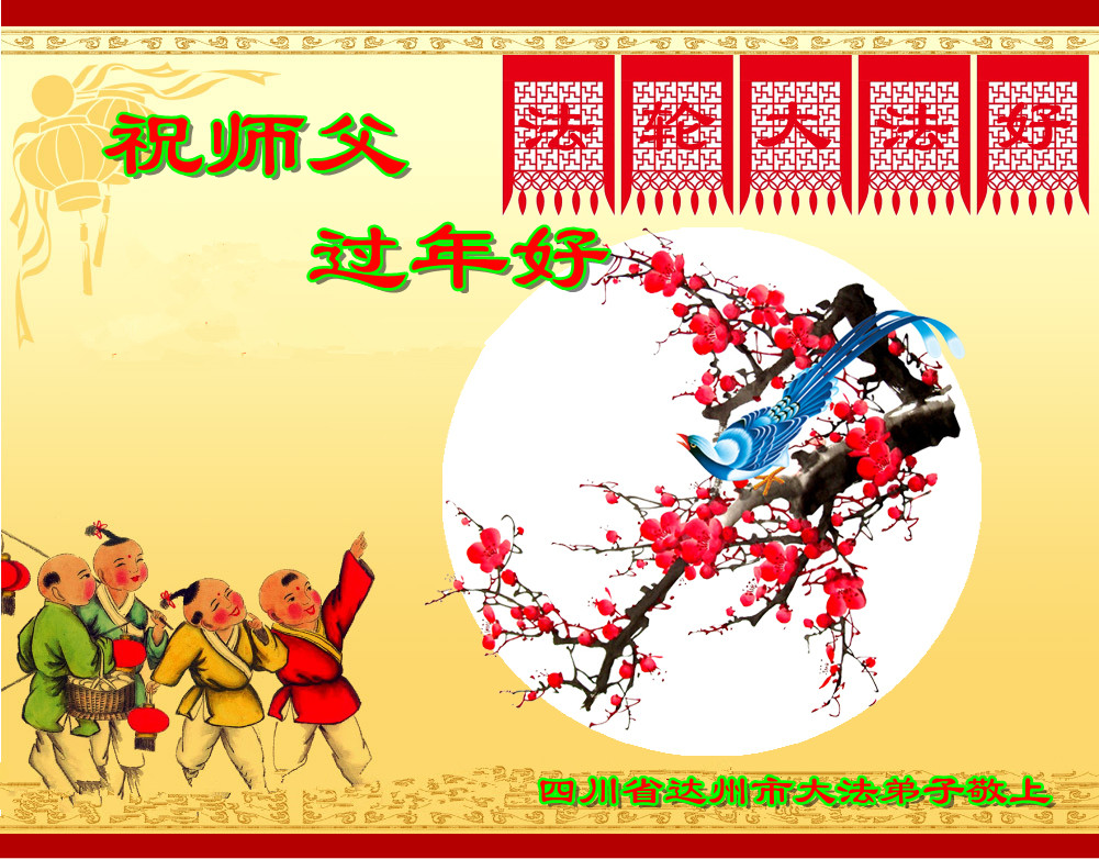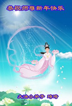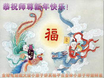 师父过年好!我是大法小弟子,第一次做贺卡给师父拜年。我的奶奶和哥哥都是大法弟子。我们一定要找回修炼如初的状态,多学法,抓紧救人,修好自己,以报师恩,惟愿师尊笑。