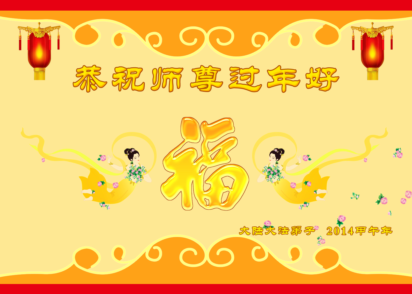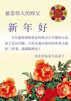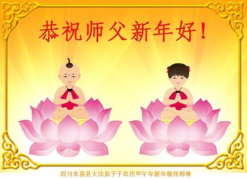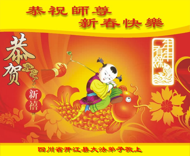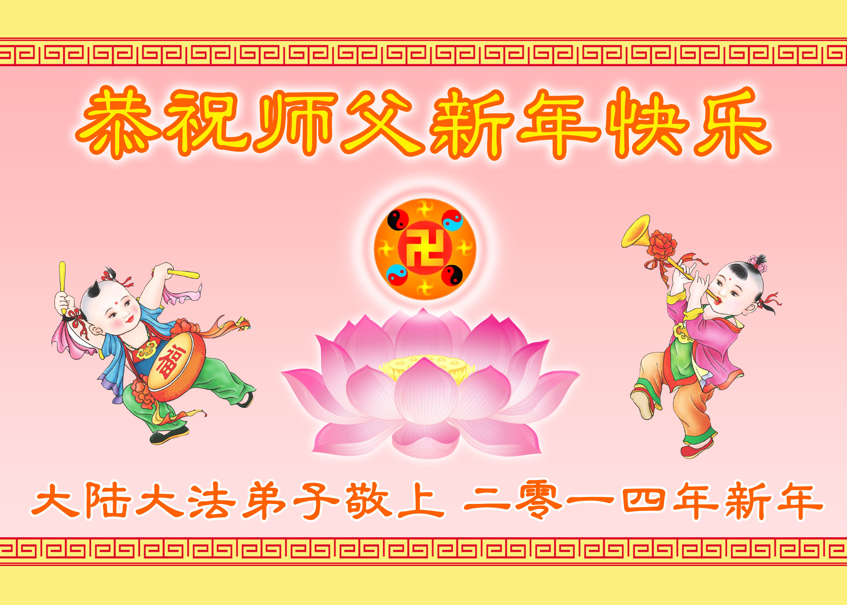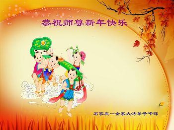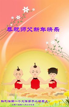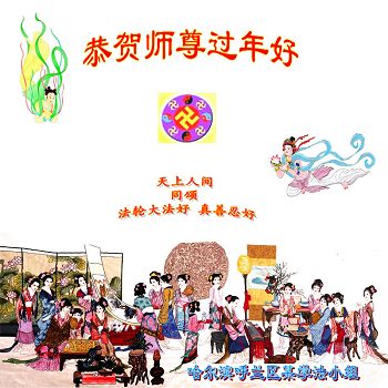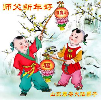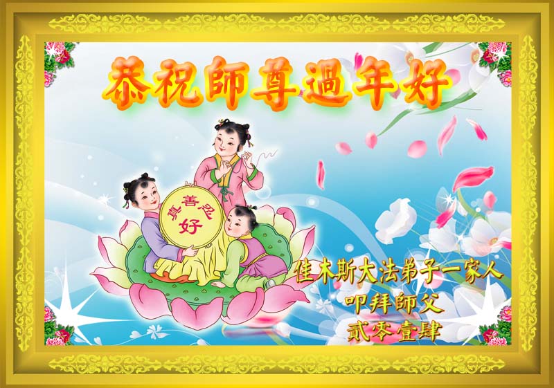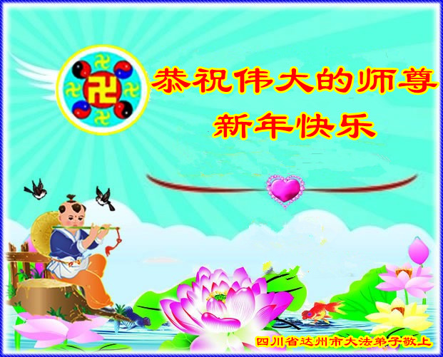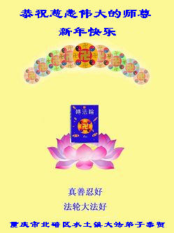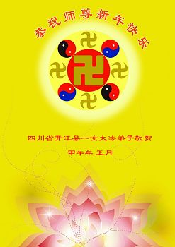 师父过年好!我是大法小弟子,第一次做贺卡给师父拜年。我的奶奶和哥哥都是大法弟子。我们一定要找回修炼如初的状态,多学法,抓紧救人,修好自己,以报师恩,惟愿师尊笑。