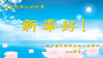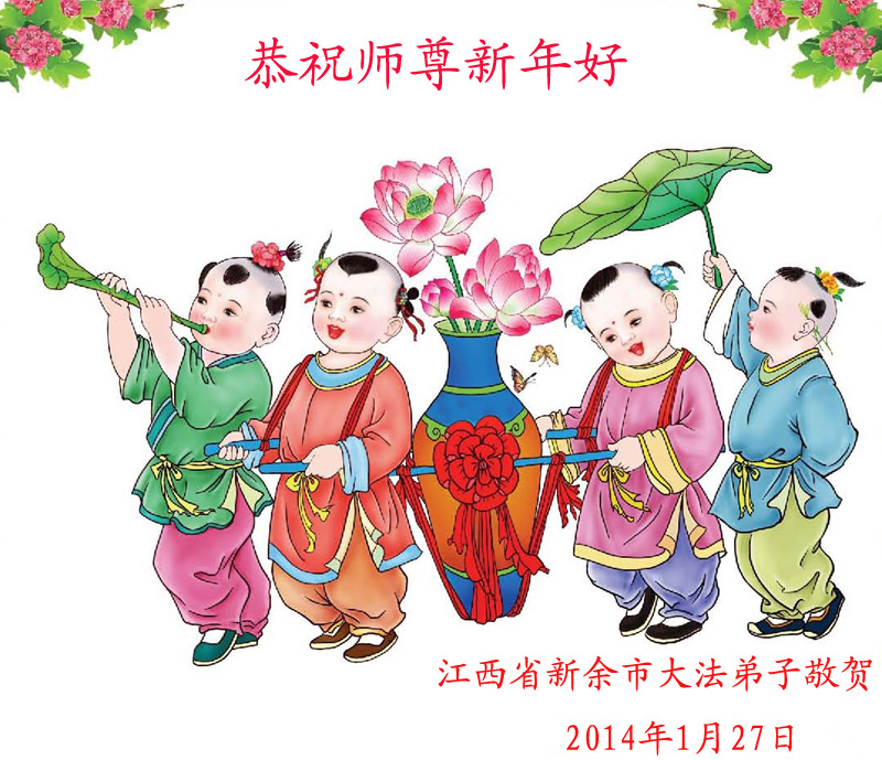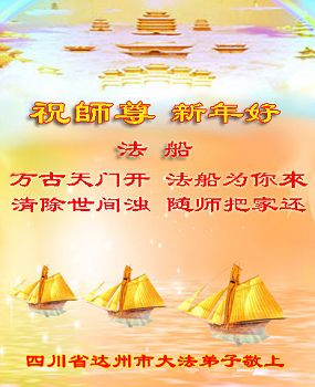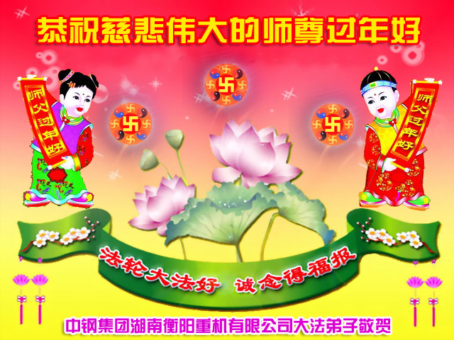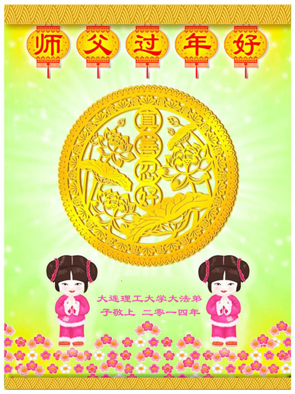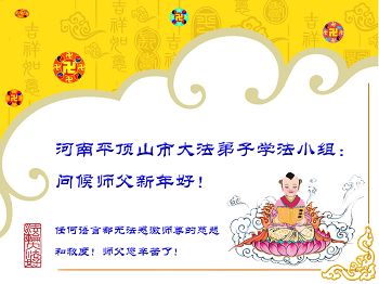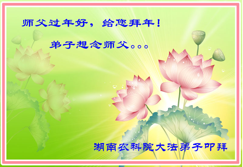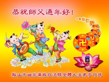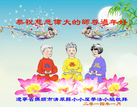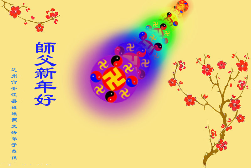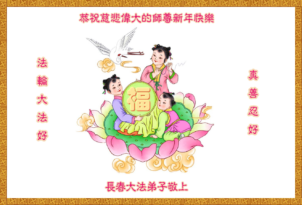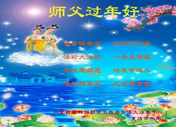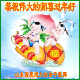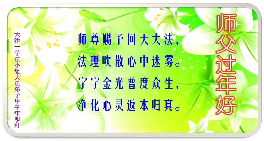 师父过年好!我是大法小弟子,第一次做贺卡给师父拜年。我的奶奶和哥哥都是大法弟子。我们一定要找回修炼如初的状态,多学法,抓紧救人,修好自己,以报师恩,惟愿师尊笑。