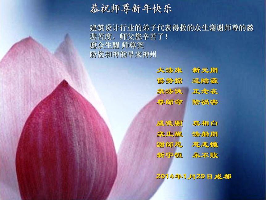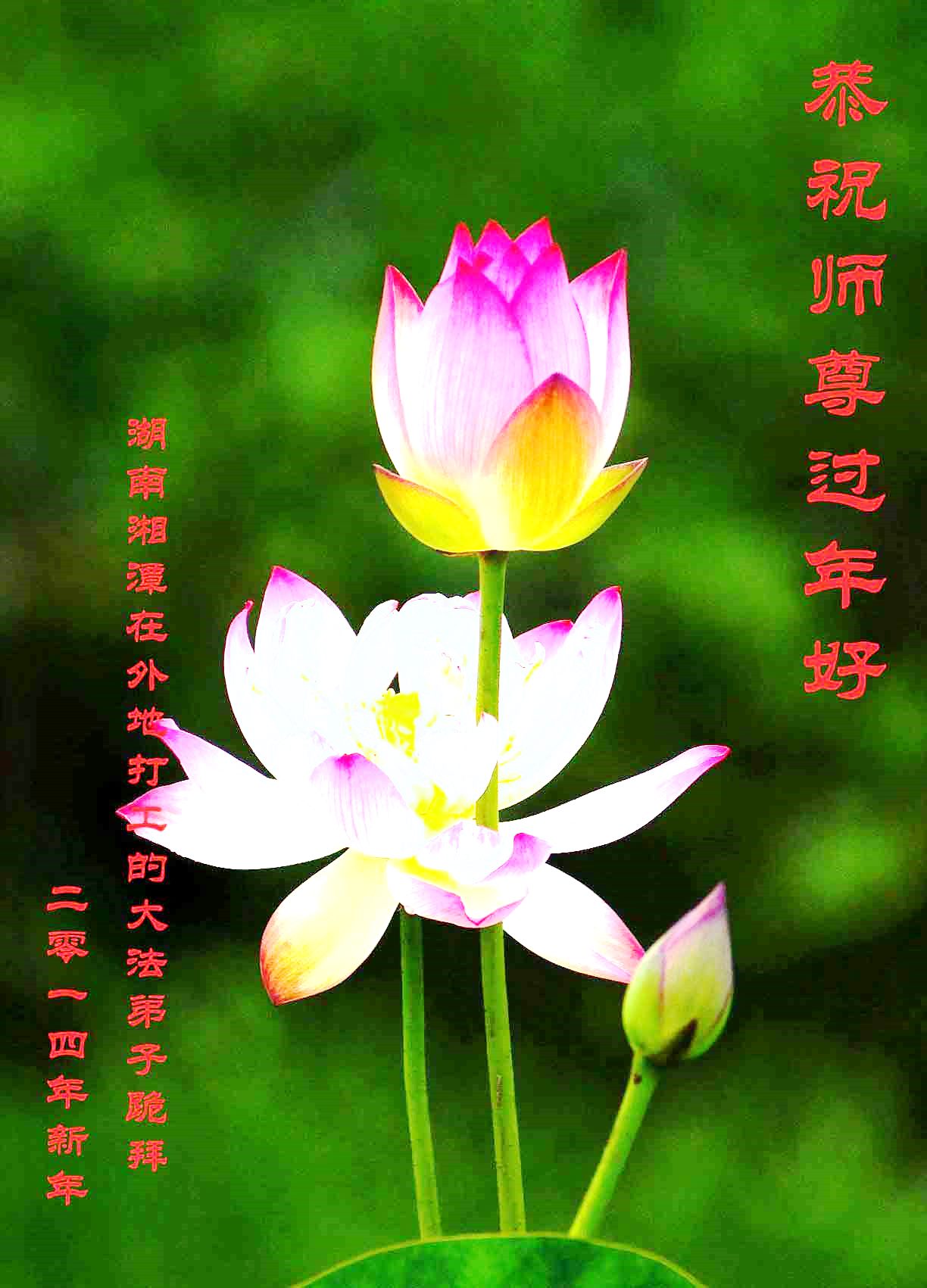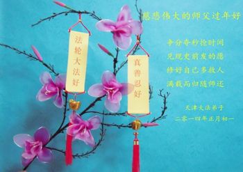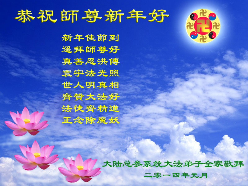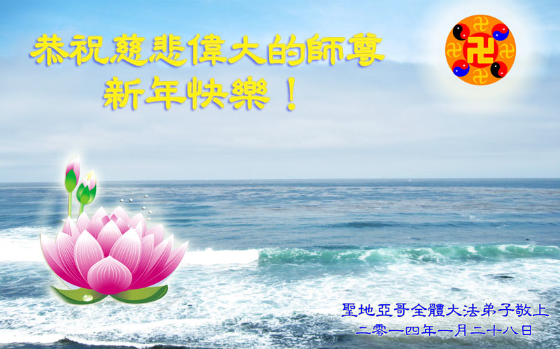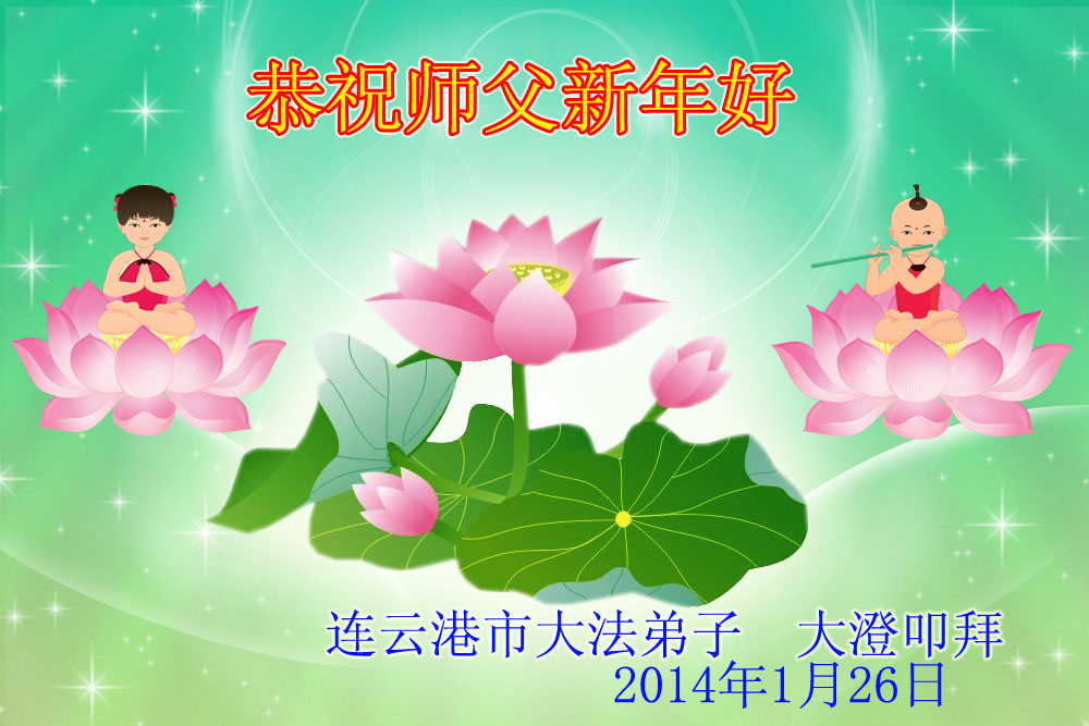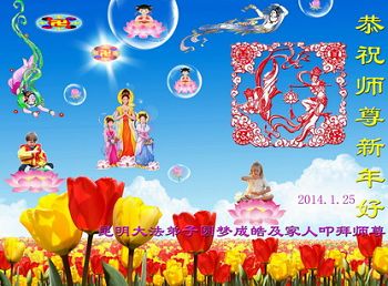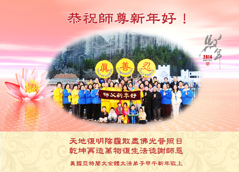 <英文版: http://en.minghui.org/html/articles/2014/1/31/144768.html>美国纽约、洛杉矶、德州、新泽西、亚特兰大等地大法弟子给师尊拜年