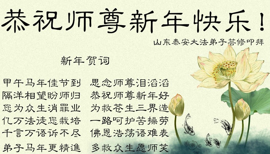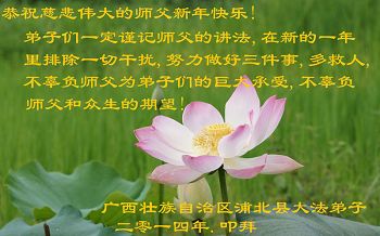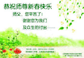 恭祝师尊甲午年好!弟子谨记师尊教诲,全面讲清真相,正念救度众生,坚定的维护法,做师尊要的弟子!