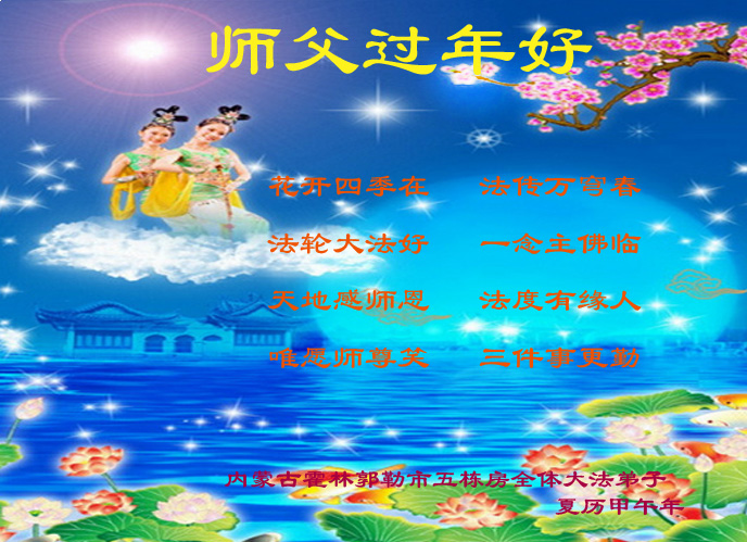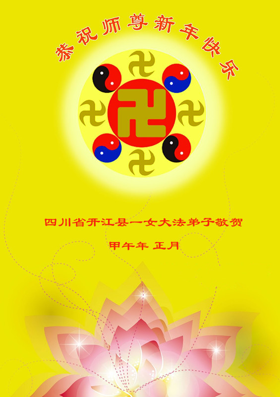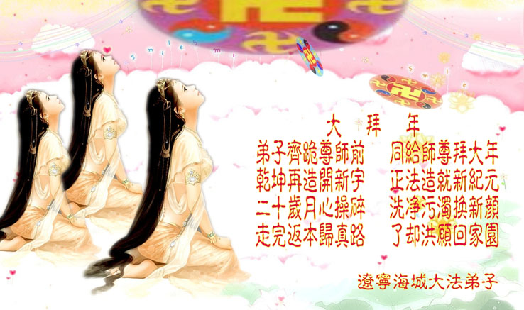 一大法弟子:恭祝慈悲伟大的师尊过年好!弟子跪拜叩首谢师恩!在新的一年里,弟子将按照师尊的教诲做好三件事,助师正法,救度众生!