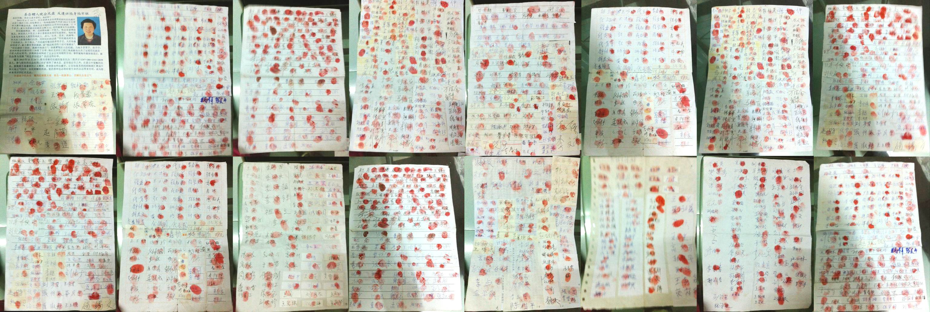 一位农民说:“我签,共产党该完了,干坏事的不管,杀人放火不管,因为一张晚会光盘就把人抓了,太不应该了。”