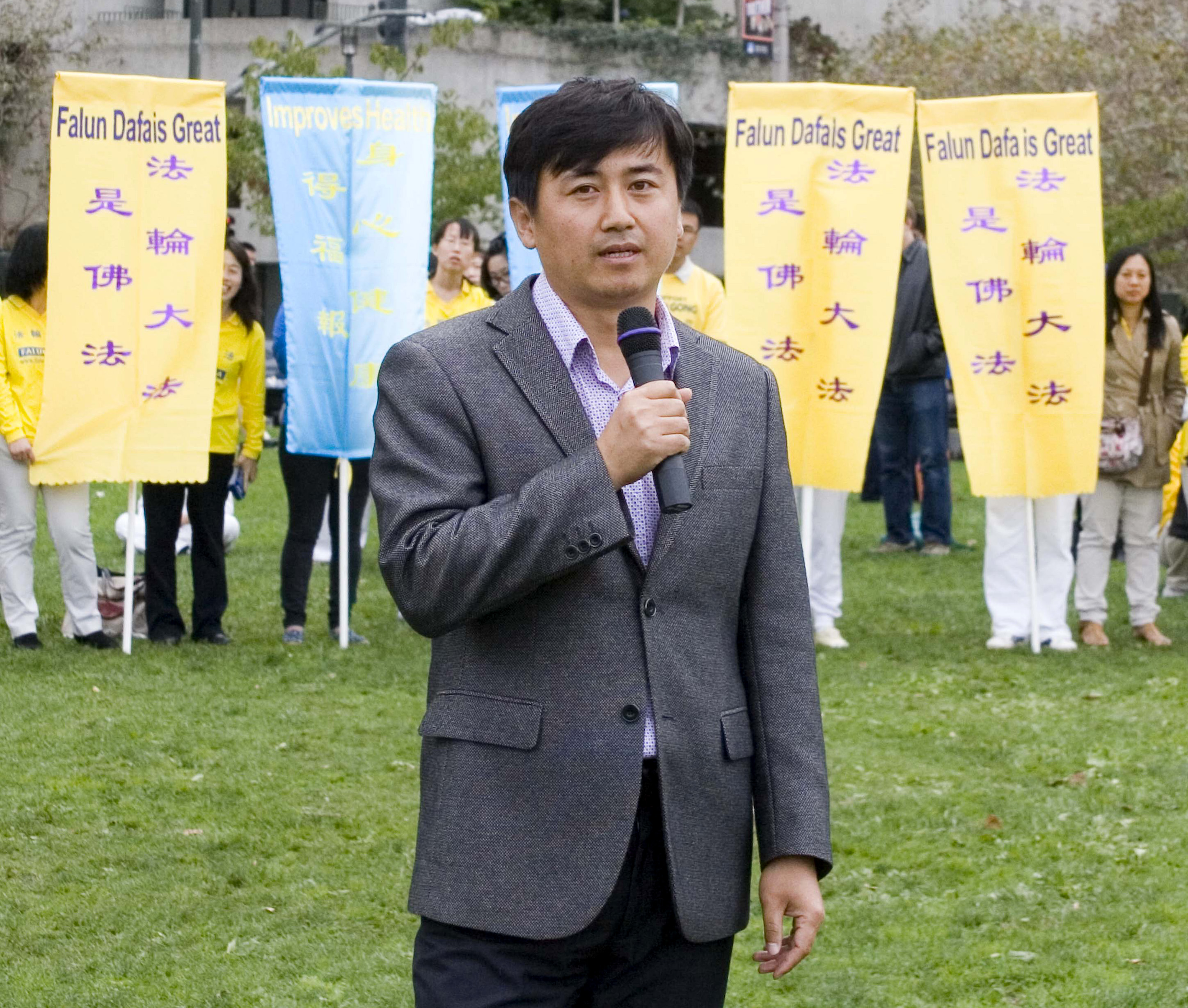 刚从中国大陆来旧金山湾区不久的王允波在集会中表示,生活在中国的他,从小就被教育要精明一些,保护好自己不被伤害,所以从来不愿意吃亏,也不能吃亏。而法轮功的很多浅显易懂的道理却告诉了他为什么要做一个好人和如何去达到一个好人的标准。