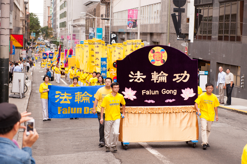 ![]() 图1-3:法轮功学员的游行带给旧金山中西方人士心灵震撼 |