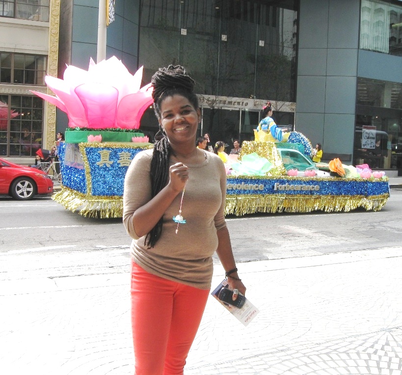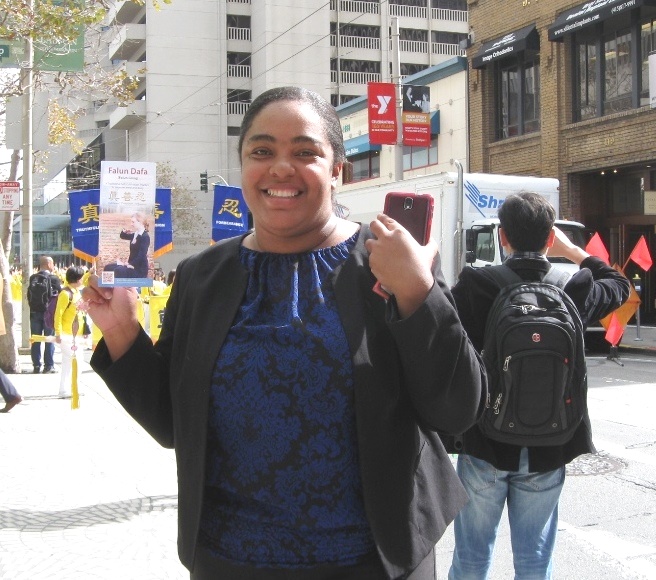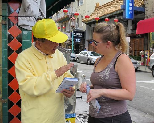 旧金山居民Chrisell曾在泰国工作,帮助那些的难民,包括帮助从中国大陆逃离迫害的法轮功学员。她说:“我非常高兴你们在旧金山举行这样的活动。你们让人们了解这些,太好了。法轮功学员的人权在中国被严重践踏。我们在这里应该尽一切可能支持他们。”
