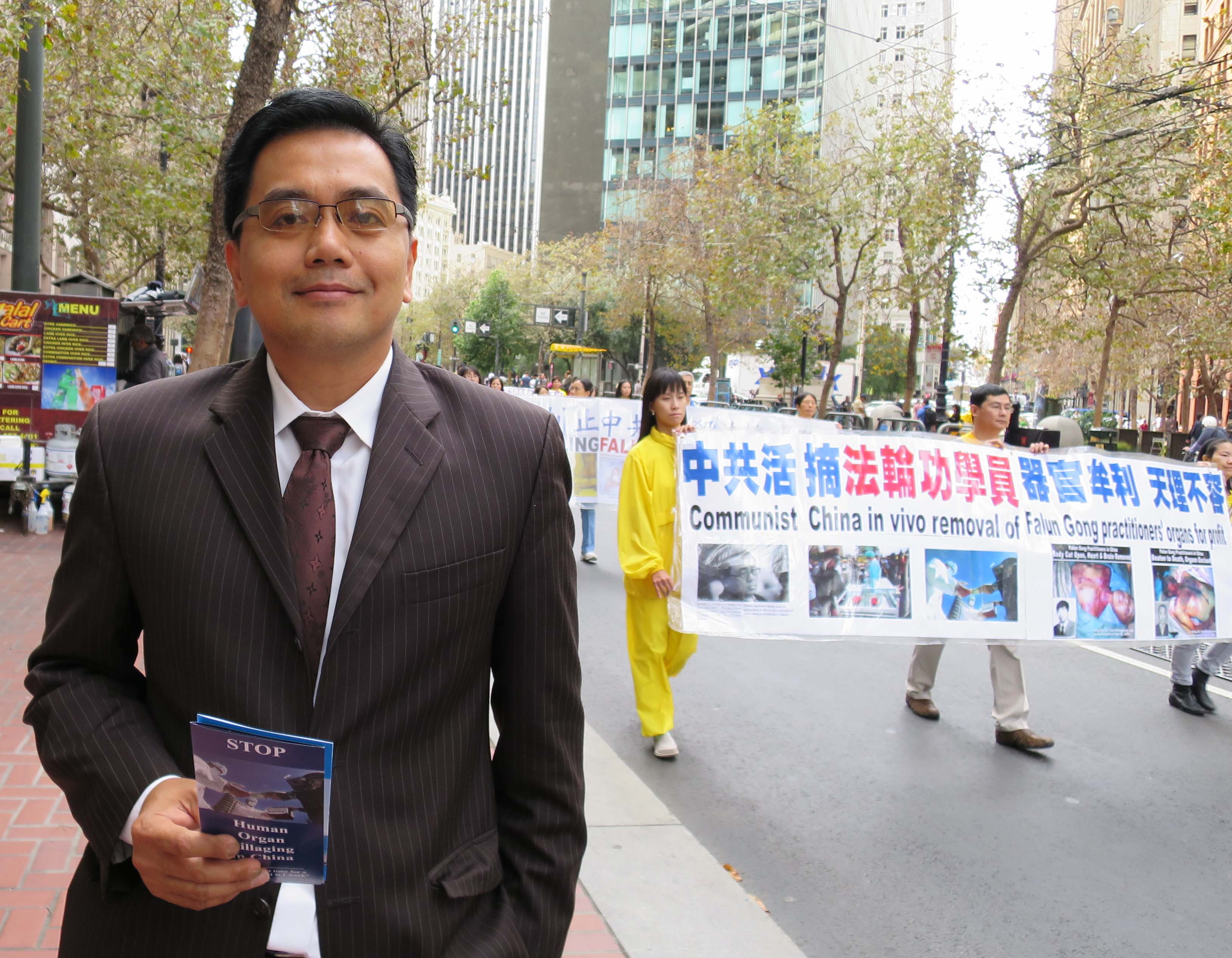 他还说:“这么好的一个团体居然遭受了迫害十五年,(迫害)还在继续,这是人类的不幸。国际社会不能让这种情况继续发生,社会应该允许有普世价值的东西存在,这对整个人类都是有好处的。” “我曾经到中领馆办签证,我看到有法轮功学员在那发资料,有关揭露中共活体摘取法轮功学员器官的信息,我当时很震惊。这么没人道的事情在现在还有发生,没有人性到这种程度,真的不可理喻,是让人无法容忍的。所以有良知的都要站出来反迫害。”