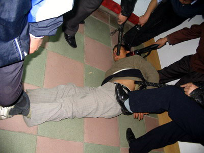 ![]() 图7.法轮功学员江礼民为揭露中共血腥罪行,站出来扮演受活摘器官迫害的大陆学员。 |