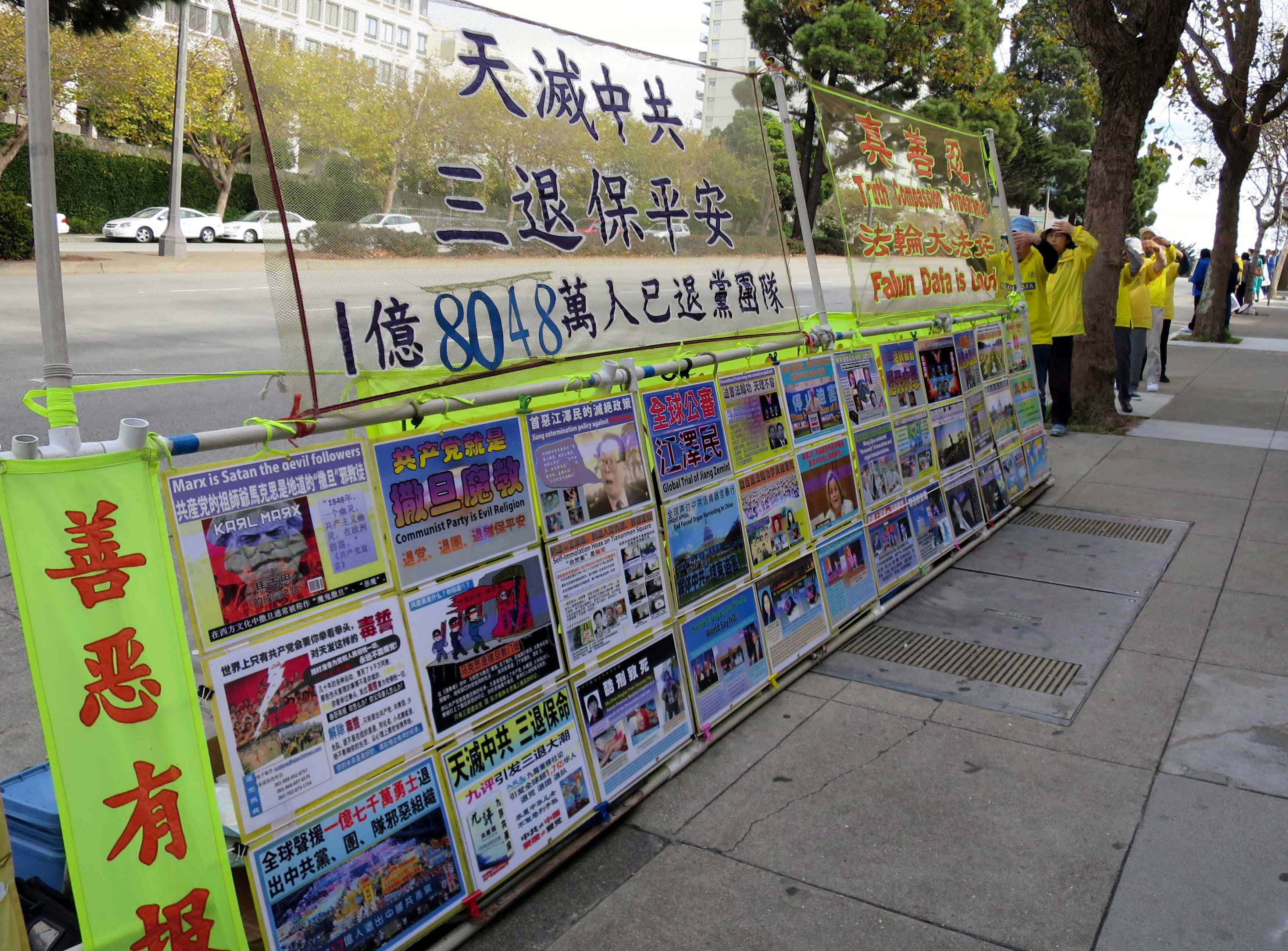 活动结束后,依然有一组法轮功学员留在那里,他们要等到中领馆签证处关门后才会离开。从一九九九年七月二十日中共开始迫害法轮功之后不久,就开始有法轮功学员到旧金山中领馆前抗议中共对法轮功的迫害,向路人和到中领馆办理签证的中西方人士讲述法轮功的真相。从一九九九年十月开始,改成了每天都来,这一坚持就是十五年,风雨无阻,他们中很多人都是年纪非常大了的学员,不乏八九十岁的老爷爷、老奶奶,本该呆在家中颐养天年、含饴弄孙,就因为中共对法轮功的迫害,使得这些老人家不得不坚持到中共领馆来表达他们的抗议,他们中有的人表示,只要迫害不停,到中领馆前讲真相就不止。