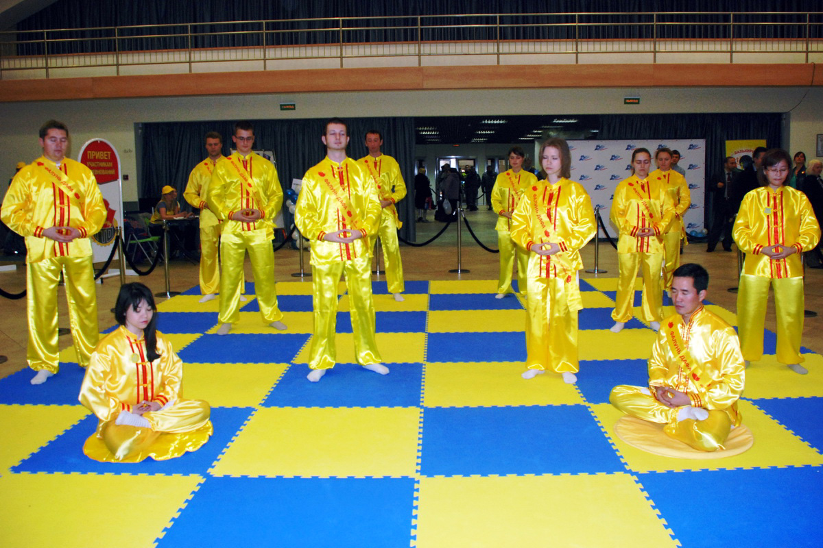 【明慧网二零一四年十月二十二日】二零一四年十月十九日,在俄罗斯莫斯科“运动健身节”上,莫斯科大法弟子为到场的孩子们、家长和各个健身组织成员带来了法轮大法的美好。