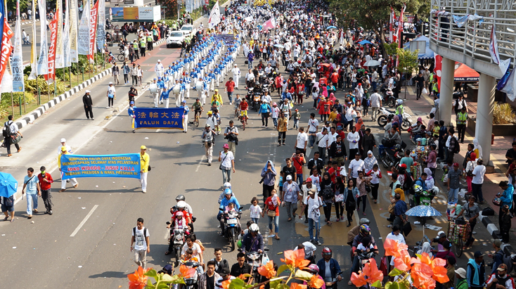 上万人观看印尼法轮功参加新任总统就职典礼仪式