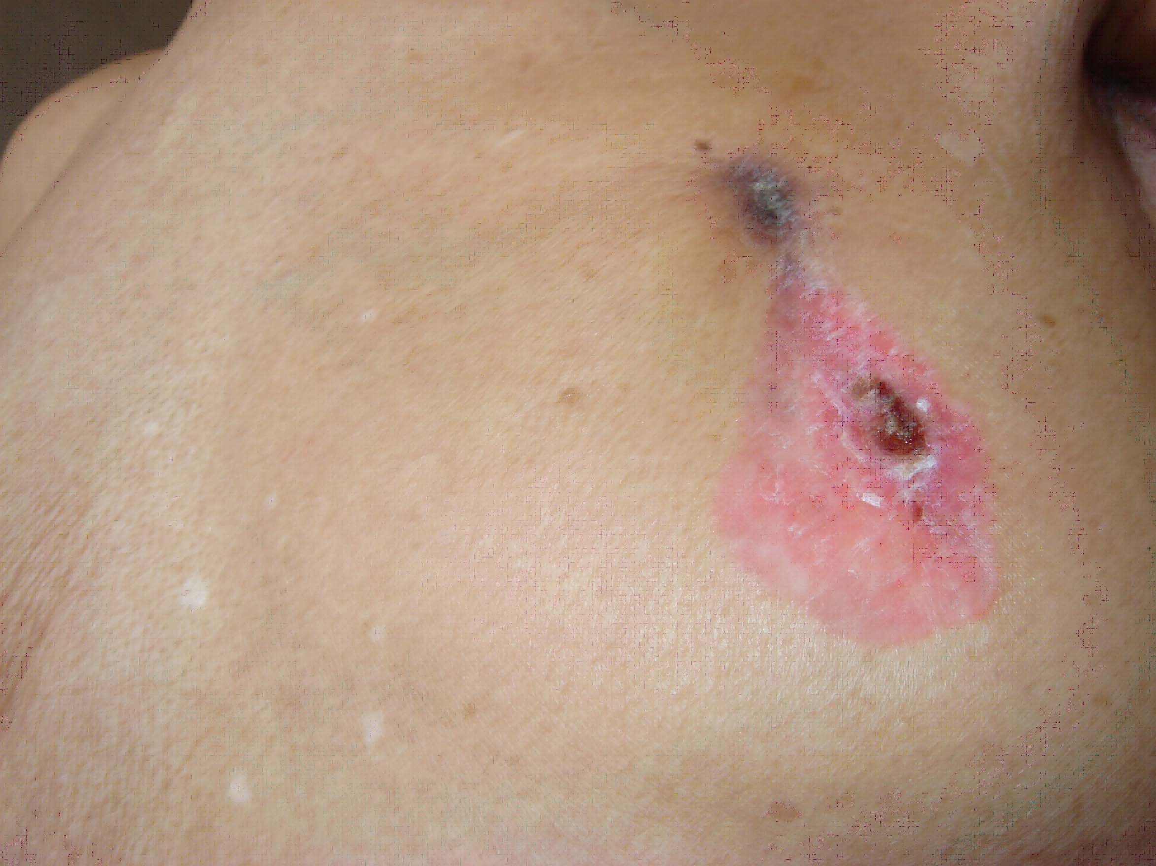 一天早上,洗脸重重摔倒,感觉肠子都被摔断了,颈椎摔伤,满身疥疮,奇痒难忍,最后左侧乳头化掉,左侧胳膊肿大麻木,失去知觉。