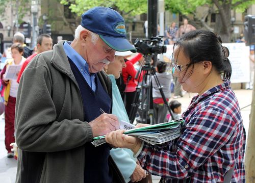 ![]() 图4-8:人们签名呼吁澳洲政府采取行动制止中共活摘器官。 |