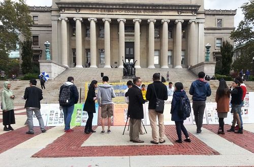 【明慧网二零一四年十月二十七日】二零一四年十月十九日至二十二日,位于美国纽约的哥伦比亚大学(简称哥大)的法轮大法俱乐部和大赦国际俱乐部合作,在哥大校园中心举办为期四天的法轮大法真相图片展。