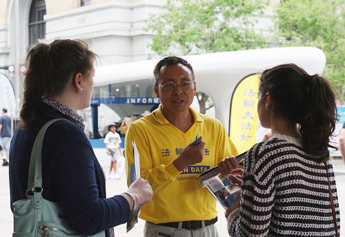 伊恩•卡希尔(Ian Cahill)是个年轻小伙子,他签了名之后去办自己的事情,之后又回来了,表示对活摘器官这件事情有所了解,并建议学员们从多个角度将征签活动做得更广泛和深入。他说:“你们需要创建一个运动,守住已经签名支持的人们,让他们知道事态的进展。”他认为这样一来,已经签名的人们就会帮助传播真相,会有更多的人来支持。他还建议设立一个网络版的征签活动,他说:“很多人看到你们在街上,并不知道你们在做什么,出于防人之心,怕自己被别人强加什么东西,根本就不靠近来。如果你有一个在线的版本,并明确地展示给人们,多数人会很乐意自己去阅读了解,然后就会支持。”他还建议学员们征签时收集人们的电子邮件,强调一定要让签过名的人获悉最新的事态进展。