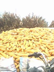 我于今年四月底回家种地,种完后又去外地打工去了,我家里也没人去地里看看。直到九月末,我回家收割玉米,发现我家的玉米结的玉米棒子出奇的大,有哈尔滨啤酒瓶子那么大小。今年从扒出的玉米堆来看,同一块地比去年(二零一三年)的玉米堆大多了,而二零一三年我家玉米亩产一千六百多斤。