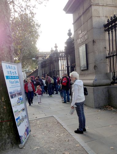 慕名而来观赏大英博物馆的中国人,无论是来伦敦做短暂旅游的大陆游客,还是要在英国生活一段时间的大陆留学生,往往都对中华传统文化感兴趣和表示尊重。英国的法轮功学员,非常希望能够抓紧机缘告诉中国同胞法轮功真相,告诉他们法轮大法是以宇宙特性“真善忍”为指导的传统修炼方法,中共栽赃陷害法轮功、残酷迫害法轮功并犯下活摘法轮功学员器官罪行,作恶多端的中共必遭天谴,希望他们远离邪恶三退保平安。除了向中国游客发真相资料、鼓励他们看真相展板外,一些法轮功学员抓住在大英博物馆内外有缘遇到宝贵的中国人的机会,向他们面对面讲真相劝三退。